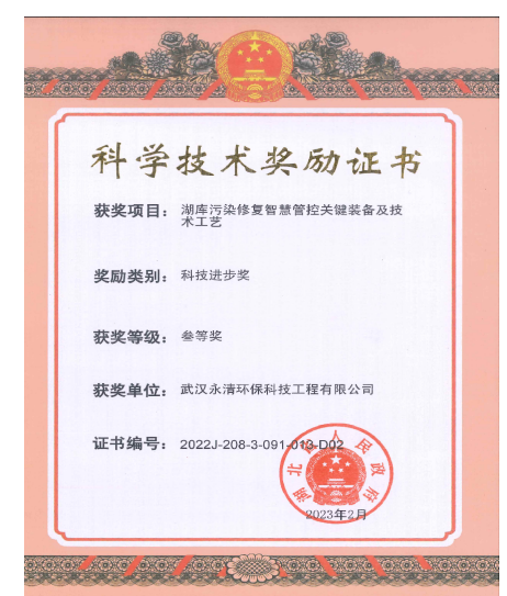 湖庫污染修復智慧管控關(guān)鍵裝備及技術(shù)工藝喜獲2022年湖北省科技進步獎